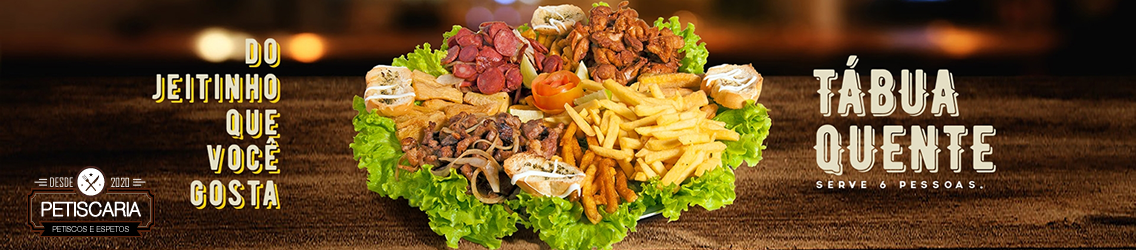Batata, Cheddar, Bacon, Camarão, Anéis de Cebola, Frango Empanado, Linguiça Acebolada, Gurjão de Peixe, Aipim Noisette